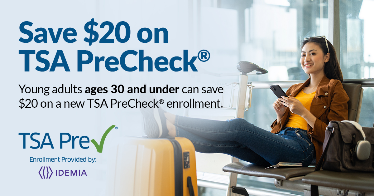 The TSA PreCheck® $20 Take Off Promo for new TSA PreCheck® enrollments will be available at IDEMIA’s 500+ enrollment centers